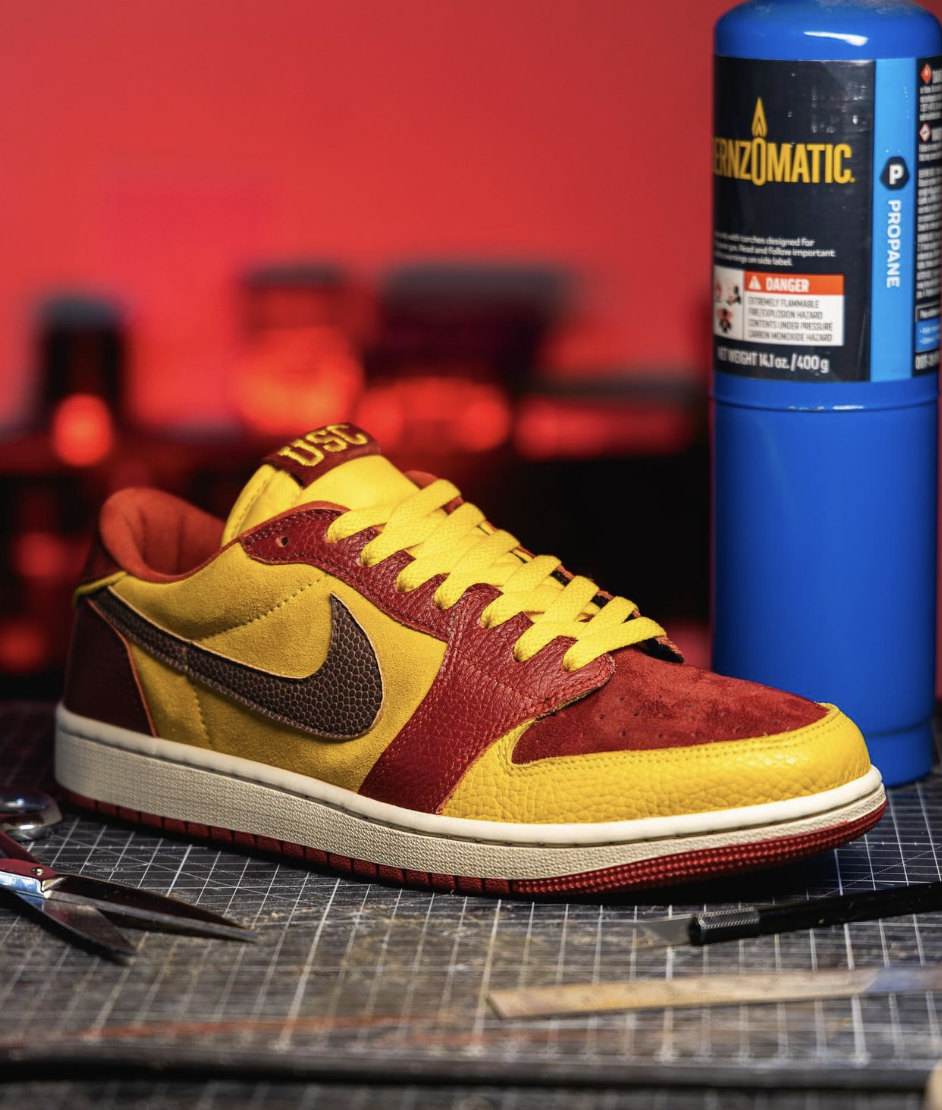 Step into Trojan territory with our custom Dunk Low, designed with a USC theme that pays tribute to the rich legacy of the University of Southern California. These sneakers feature the bold cardinal and gold colors that are synonymous with USC, along with sleek accents that capture the school’s winning spirit. The design includes USC-inspired details such as the Trojans logo on the heel and subtle nods to the university’s athletic and academic heritage. Perfect for students, alumni, or fans, these custom Dunk Lows combine school pride with street-ready style, making them a must-have for anyone looking to represent the Trojans in a bold and fashionable way. Whether you’re on campus or in the city, these kicks are the perfect blend of tradition and trend.